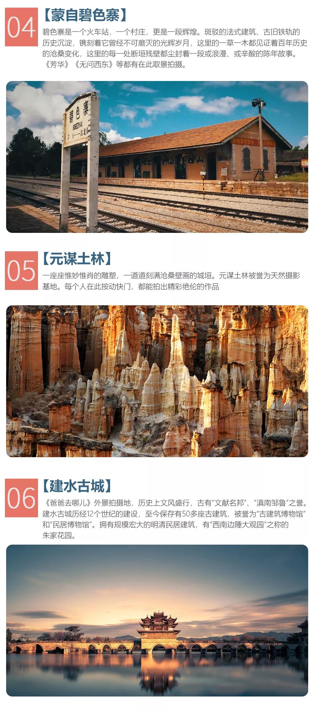 隨后我們前往蒙自碧色寨,經2小時車程抵達蒙自百年歷史記憶庫,素有 “小巴黎”之稱的滇越鐵路【碧色寨】,這里是電影《芳華》和《無問西東》的拍攝地,斑駁的法式建筑和古舊的鐵軌,鐫刻著它不可磨滅的光輝歲月,也是攝影師和畫家最喜歡去的取景地點;