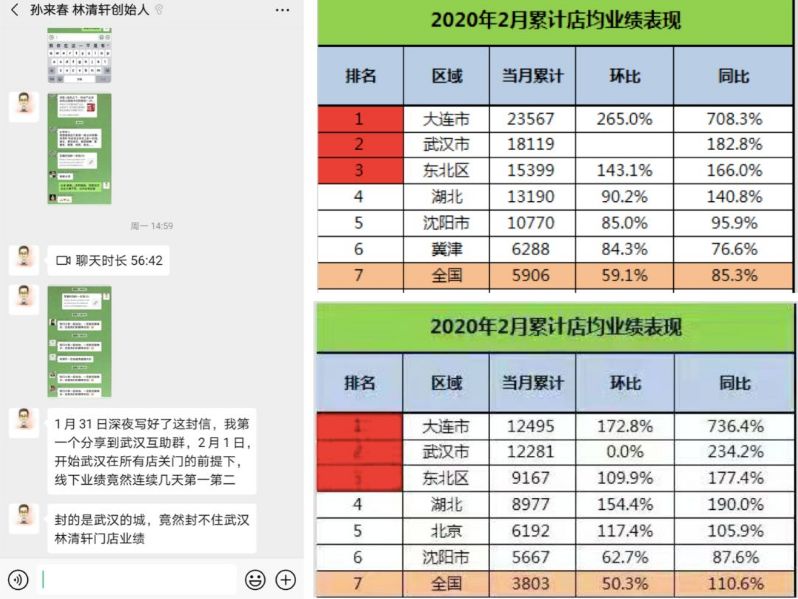 受疫情影響,林清軒在武漢的30多家門店已全部關閉,結果在2月統計全國門店業績時,武漢門店依然名列第二。孫來春起初還以為是統計出了錯,后來發現,從2月1號開始,武漢的100多位門店導購全部通過小程序,釘釘打通淘寶,線上做業績。
