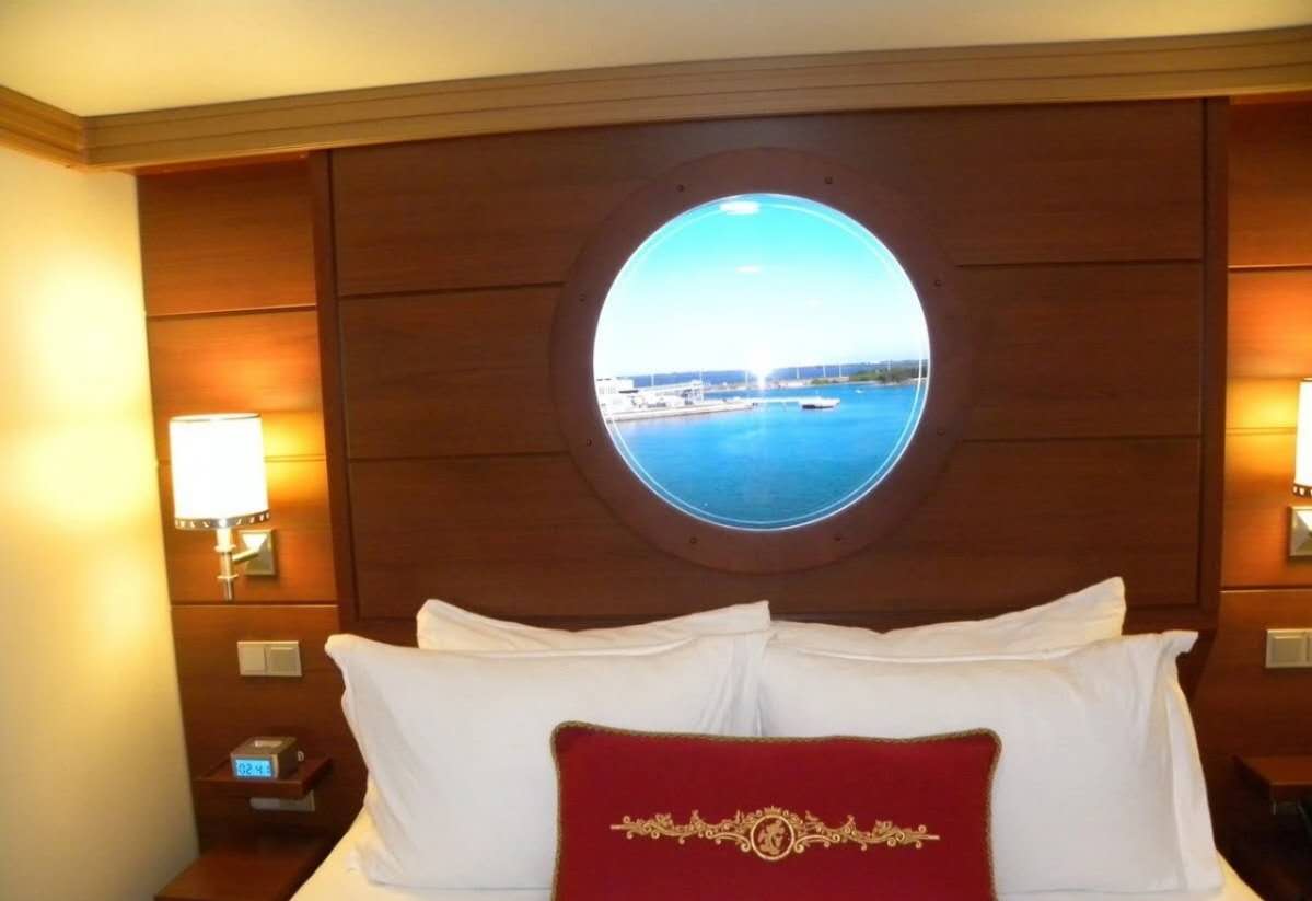 為了彌補住在內側客艙的游客在客艙內看不到海景的遺憾,“迪斯尼之夢”號( Disney Dream)郵輪為內側客艙提供了虛擬舷窗,通過安裝在船外的高清攝像機,游客可以看到船外的實時景色,還有孩子們喜歡的動畫。