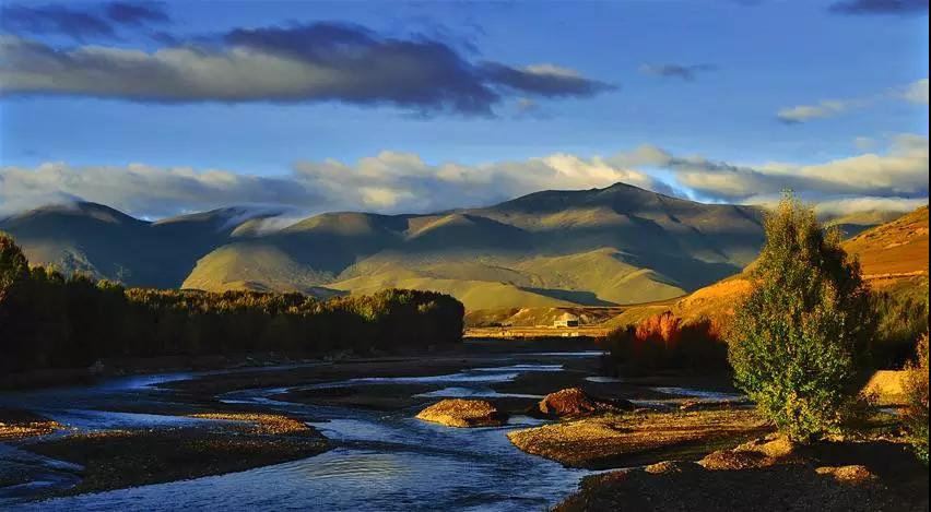 如果剛好遇到紅草季,我們將前往【桑堆紅草地】,欣賞那一抹浪漫的“高原紅”。生長在水中的紅草,大都疏密相間,像灌木枝扎根在水池中。這些紅草在陽光的照射下,紫里透紅,非常吸引眼球。遠處山腰斜坡上碩大的藏文六字真言,發散著一種雪域高原的神秘與莊嚴。