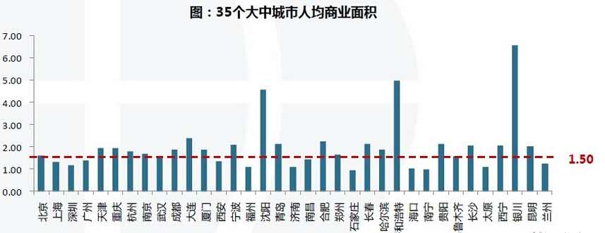 除北上廣深外,80%以上城市的人均商業面積都在1.5㎡以上!