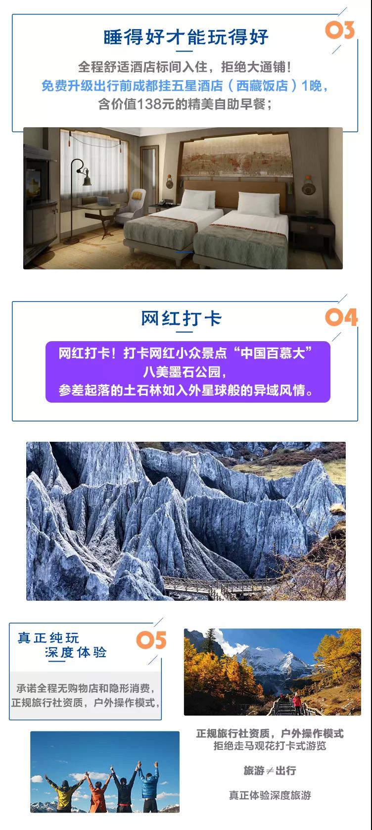 用餐:含出發日成都西藏飯店價值138元精美自助早餐1頓,行程中未包含的餐食自理(建議大家自備零食或AA去體驗當地特色美食小吃);司機餐食費用由隊員均攤。