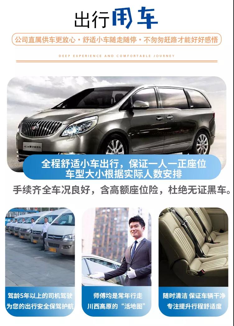 1、關于車輛交通:目前四川旅游市場8座以下車輛無法辦理旅游牌照,請游客知悉,以此理由提起的投訴我方拒不受理,望您諒解。