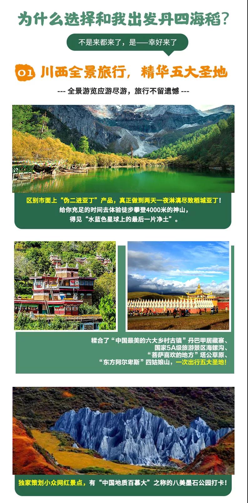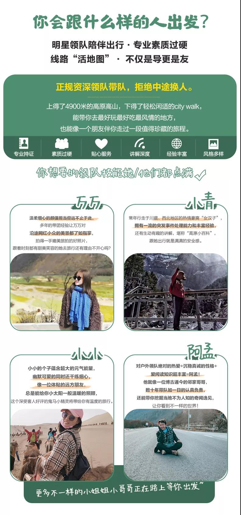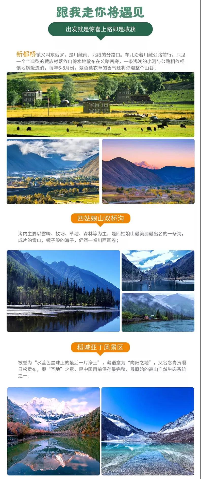 贈送:特色贈送甲居藏寨藏家晚餐、高原特色牦牛湯鍋、理塘茶馬古道自助石板燒烤;贈送旅游三寶、魔術(shù)頭巾、礦泉水緩解旅途疲勞;贈送價值98元圣地旅拍精致木質(zhì)相框&照片;贈送稻城專業(yè)攝影師現(xiàn)場教學(xué)夜拍星空直出大片,沒有星星時則教拍流光大片;15人以上贈送甲居藏寨篝火晚會;贈送成都市區(qū)24小時接機(jī)/接火車服務(wù);贈送項目不用不退。