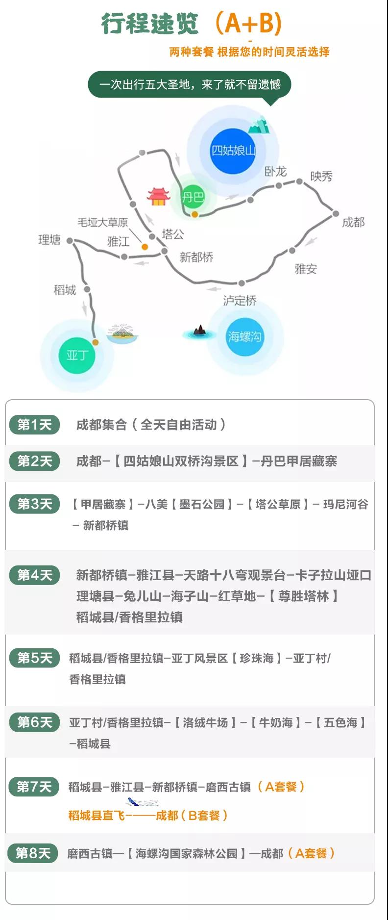 3. B套餐游客可于今日退酒店后,自行前往稻城亞丁機(jī)場直飛成都結(jié)束本次旅行。