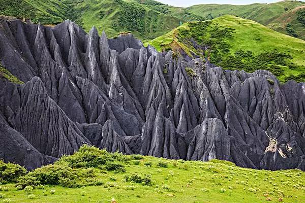 離開甲居,我們從丹巴城穿過牦牛谷峽谷抵達(dá)八美【墨石公園】。八美地質(zhì)公園景區(qū)地處中國最美景觀大道318國道核心區(qū),是香格里拉之巔海螺溝通向香格里拉之魂稻城亞丁的中轉(zhuǎn)站,被稱為“中國地質(zhì)百慕大”,是我國唯一的高原石林景觀,同時也是318道上新晉的網(wǎng)紅打卡地,具有“春賞格桑夏避暑,秋觀彩林冬踏雪”的風(fēng)光;墨石公園有著許多千姿百態(tài)的奇幻墨石,忽而是高聳綠地又忽而裸露出冷峻的黑灰?guī)r面,參差起落極具外星球般的異域風(fēng)情。