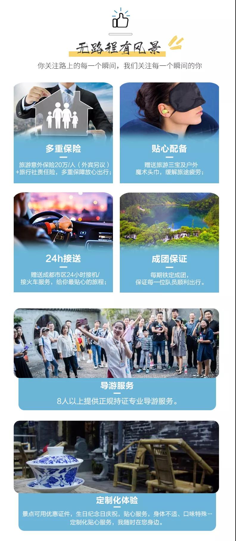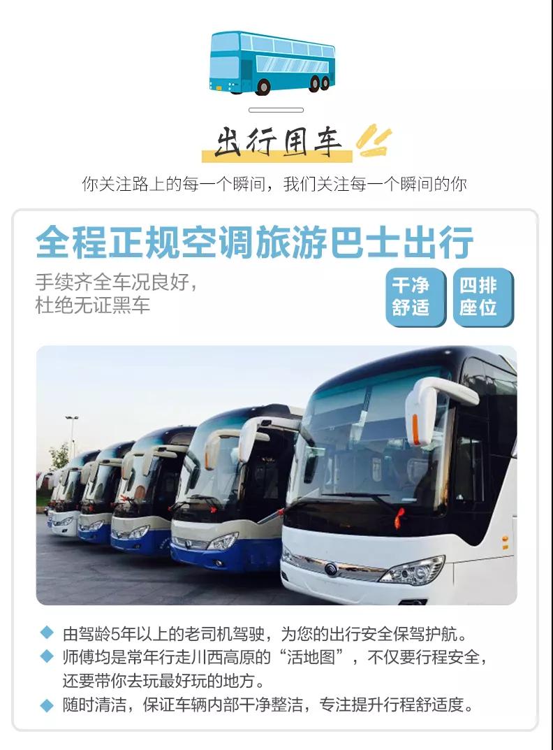 1、關于車輛交通:目前四川旅游市場8座以下車輛無法辦理旅游牌照,請游客知悉,以此理由提起的投訴我方拒不受理,望您諒解。