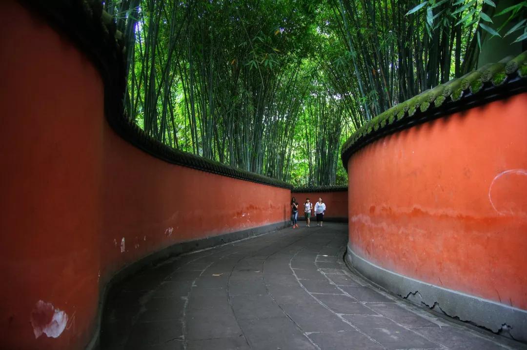 用過午餐后我們前往全世界影響最大的三國遺跡博物館——【武侯祠】(漢昭烈廟),它是中國唯一的一座君臣合祀祠廟和最負盛名的諸葛亮、劉備及蜀漢英雄紀念地。規模宏大的武侯祠里廣植松柏竹木,寧靜肅然,其中又以一道網紅的景色“紅墻竹影”最為人稱道,紅墻夾道蜿蜒延伸而去,兩旁青竹蔥蘢,陽光下竹影疏疏,斑駁映畫紅墻之上,走在這里趁人少的時候立馬按下快門,直出大片。