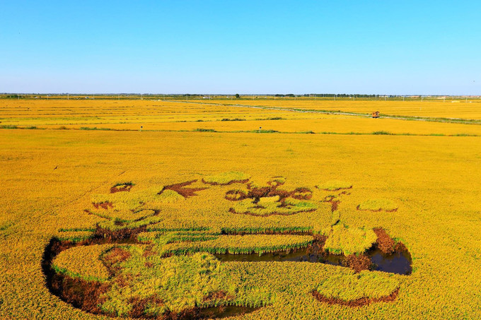你可能見過各種繪畫形式,但你一定沒見過稻為筆,田為畫布,風奏樂,蒼穹下的奇特畫卷。一片金燦燦的稻田,混合著各種作物的色彩,一幅幅造型各異的的美麗畫卷,在這個收獲的季節格外的格外的生機勃勃。