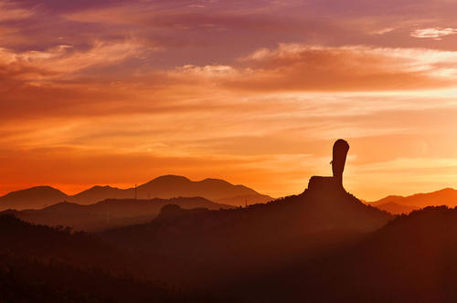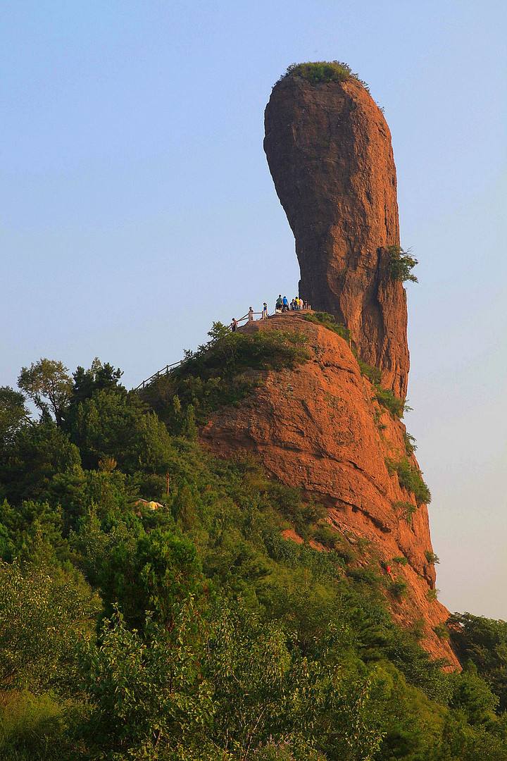 早上7:00出發(fā)赴棒槌山,預(yù)計(jì)7:20到達(dá)。拍攝棒槌山的獨(dú)具風(fēng)采的美景。頗為奇妙的是,磬錘峰半腰長著一株高約3米的桑樹,據(jù)測這株桑樹與磬錘峰相親相愛已經(jīng)三百年了,據(jù)傳為我國最早之桑樹。峰下有一平臺(tái),東面斷崖有清代密宗雕像。