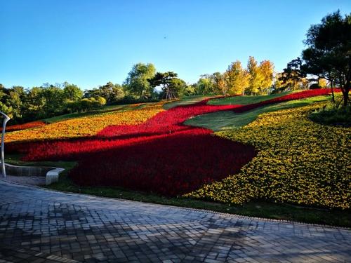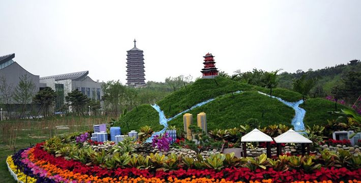 早上從延慶出發(fā),赴北京園博園。北京園博園園區(qū)布局為“一軸、兩點(diǎn)、五園”,“一軸”即園博軸,是貫穿主展區(qū)的景觀軸線。“兩點(diǎn)”即永定塔和錦繡谷。永定塔為遼金風(fēng)格的仿古塔,高69.7米,是園博園的標(biāo)志性建筑;錦繡谷是將一個(gè)20多公頃的建筑垃圾填埋坑打造成了花團(tuán)錦簇的下沉式花谷。“五園”即傳統(tǒng)展園、現(xiàn)代展園、創(chuàng)意展園、國際展園和濕地展園,共有展園69個(gè)。