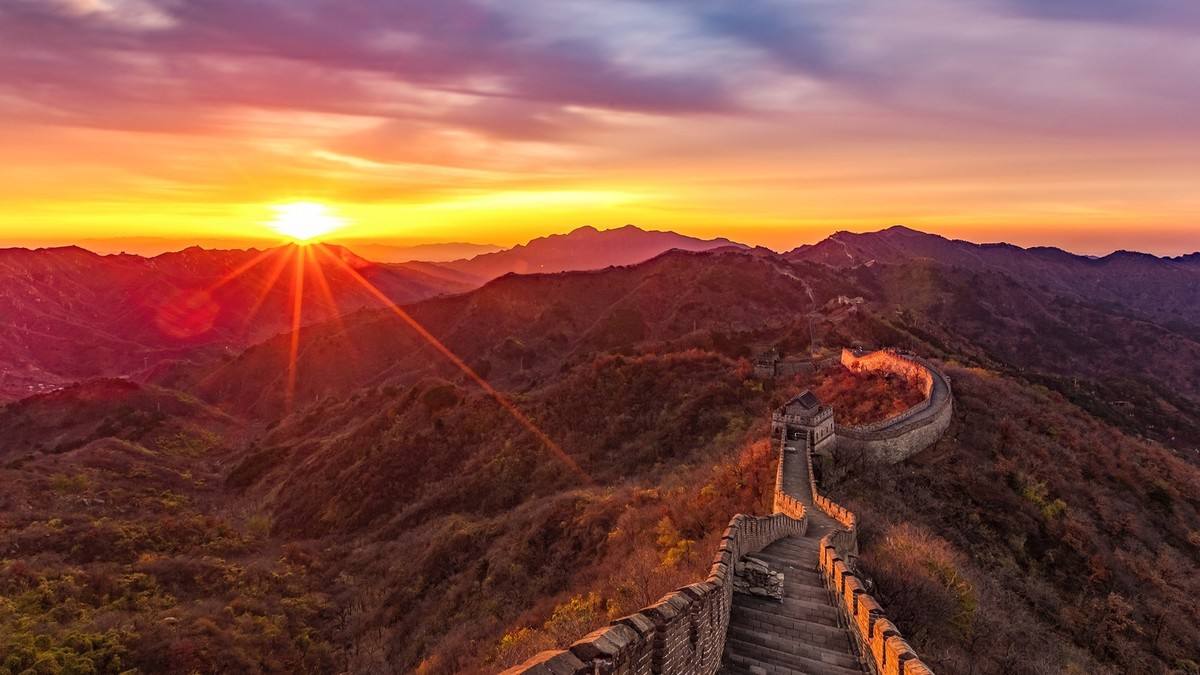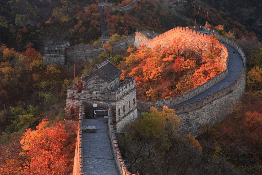 慕田峪長城于公元1368年由朱元璋手下大將徐達在北齊長城遺址上督建而成,是明朝萬里長城的精華所在。此段長城東連古北口,西接居庸關,自古以來就是拱衛京畿的軍事要處,有正關臺、大角樓、鷹飛倒仰等著名景觀,長城墻體保持完整,較好地體現了長城古韻。