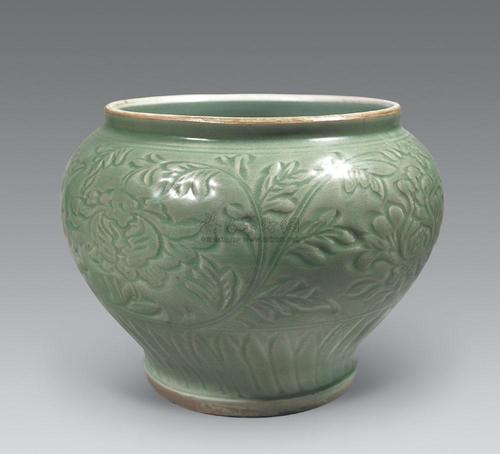 從紋飾看,宋代龍泉窯器物純以釉色取勝,紋飾裝飾極少,即便有紋飾也多是刻花裝飾輔以篦點和劃紋,以及波浪、云紋、蕉葉等圖案,構圖極為簡練,手法生動。而明代器物上的紋飾,裝飾較為繁復,圖案帶有了明顯的象征意義,是明代龍泉窯器物比較常見的裝飾手法。