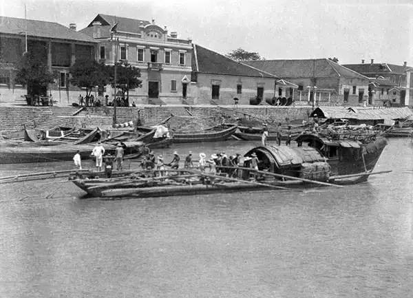 杭州,大運河里裝載木材的船只