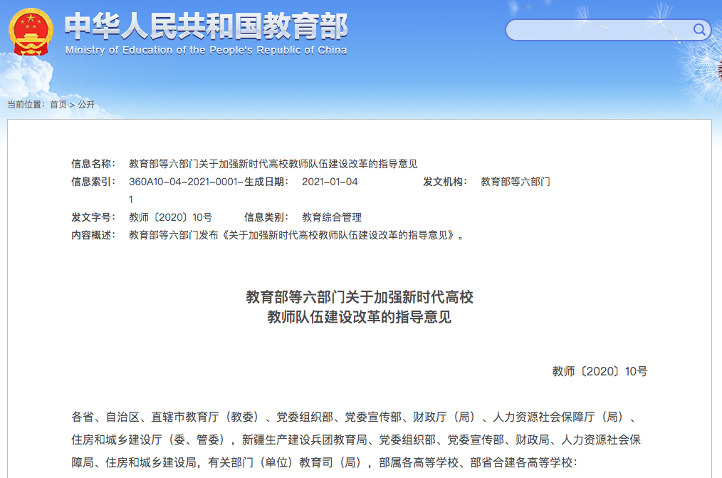 ——教育部教師工作司負責人就《關于加強新時代高校教師隊伍建設改革的指導意見》回答