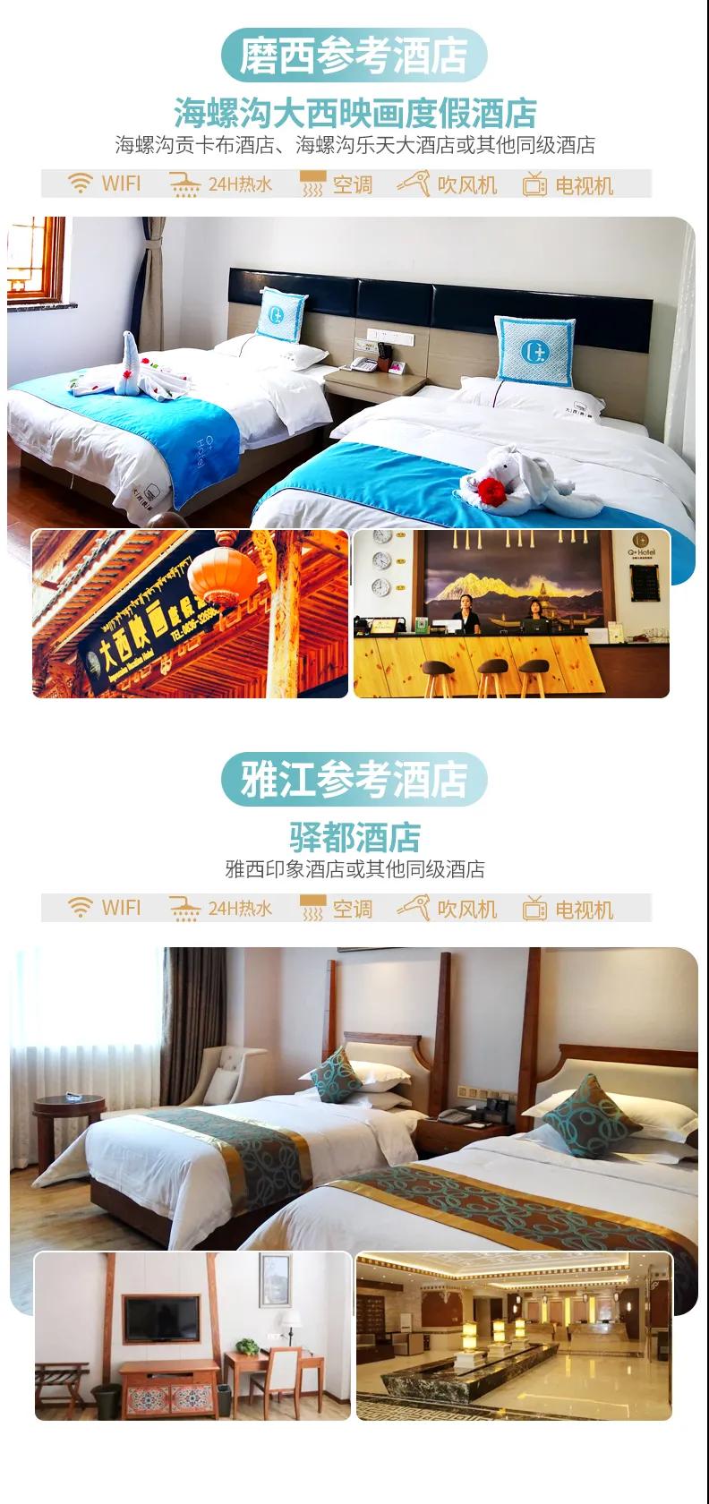 含全程6天5晚舒適酒店。我們反復踩點策劃了既能全景玩理塘又只需要入住一晚理塘,其他均是低海拔住宿,而且理塘我們特別安排了有氧地暖房,保證大家高原旅行的安全和行程體驗。參考酒店如下(僅供參考,實際以訂房為準):