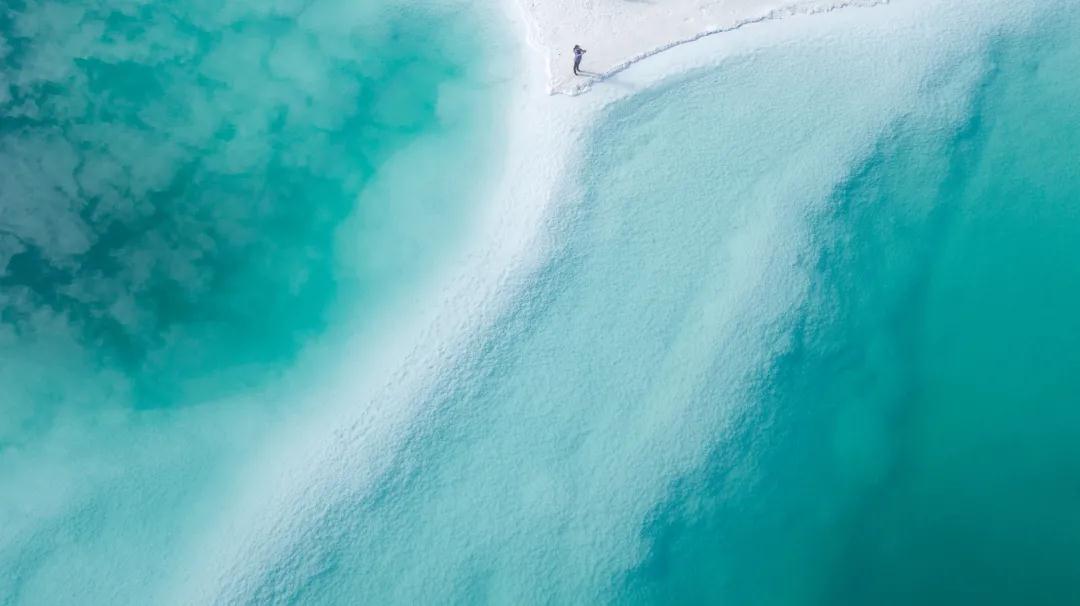 在水上雅丹不遠處便是【東臺吉乃爾湖】。乃爾湖岸邊盡是覆蓋著的白色結(jié)晶,湖周圍是大片的雅丹地貌,搭配上顏色干凈到極致的湖水、西北特有的廣闊無垠的天空,純粹而強烈的視覺沖擊,這方圓百里大漠戈壁無人區(qū)的珍寶明珠,這只屬于大自然的神秘顏色,讓你仿若來到了世界的盡頭,讓你感受一種歸于自然的內(nèi)心平靜。