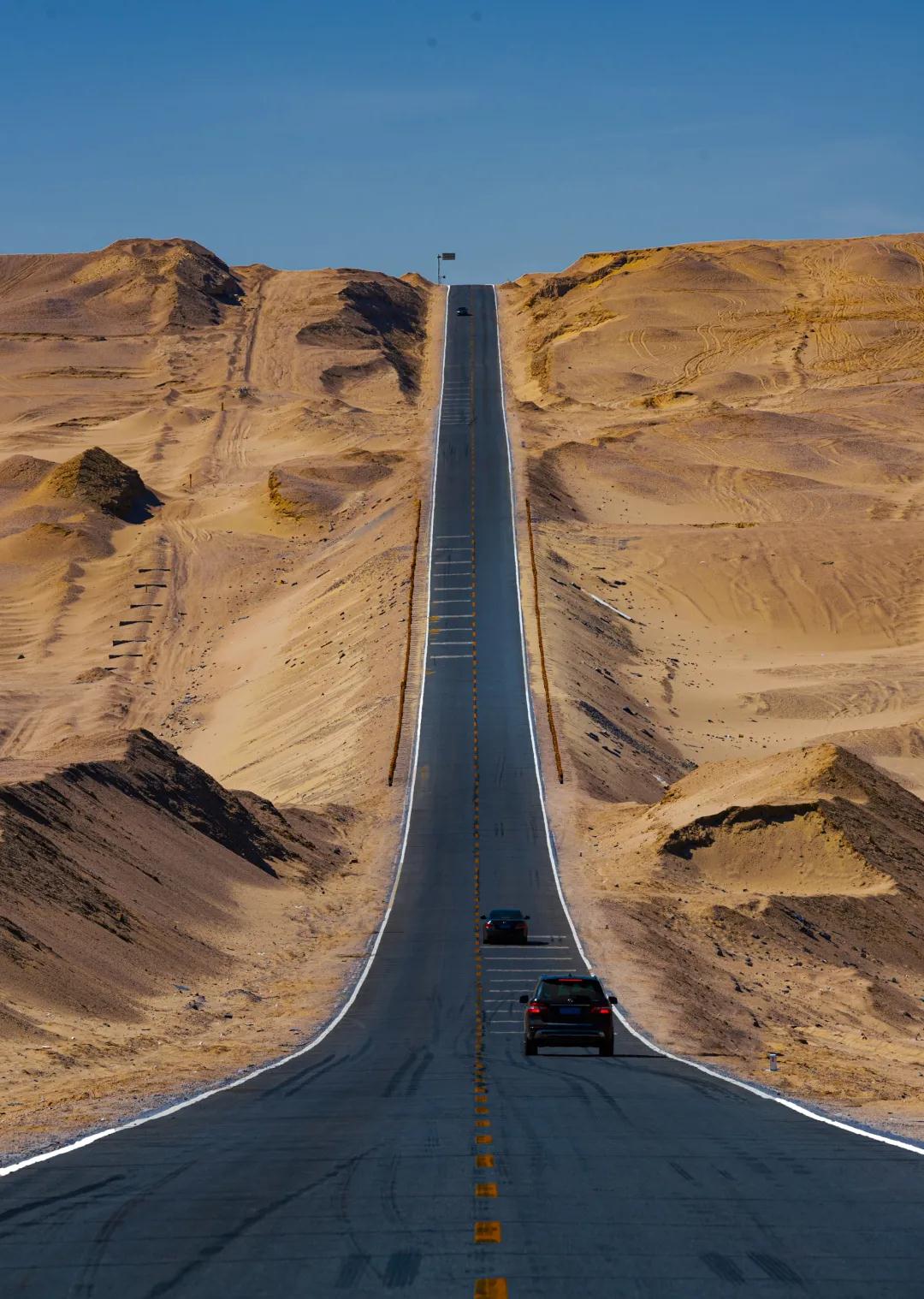 車子繼續(xù)向前行進,我們來到不遠處的沿著G315戈壁天路駛向大柴旦,一眼望不到盡頭筆直的數(shù)百公里公路,無需刻意挑選就是一派好萊塢大片風(fēng)景,野性的路野性的起伏野性的自己,在這條路上你可以盡情感受公路旅行的自由。
