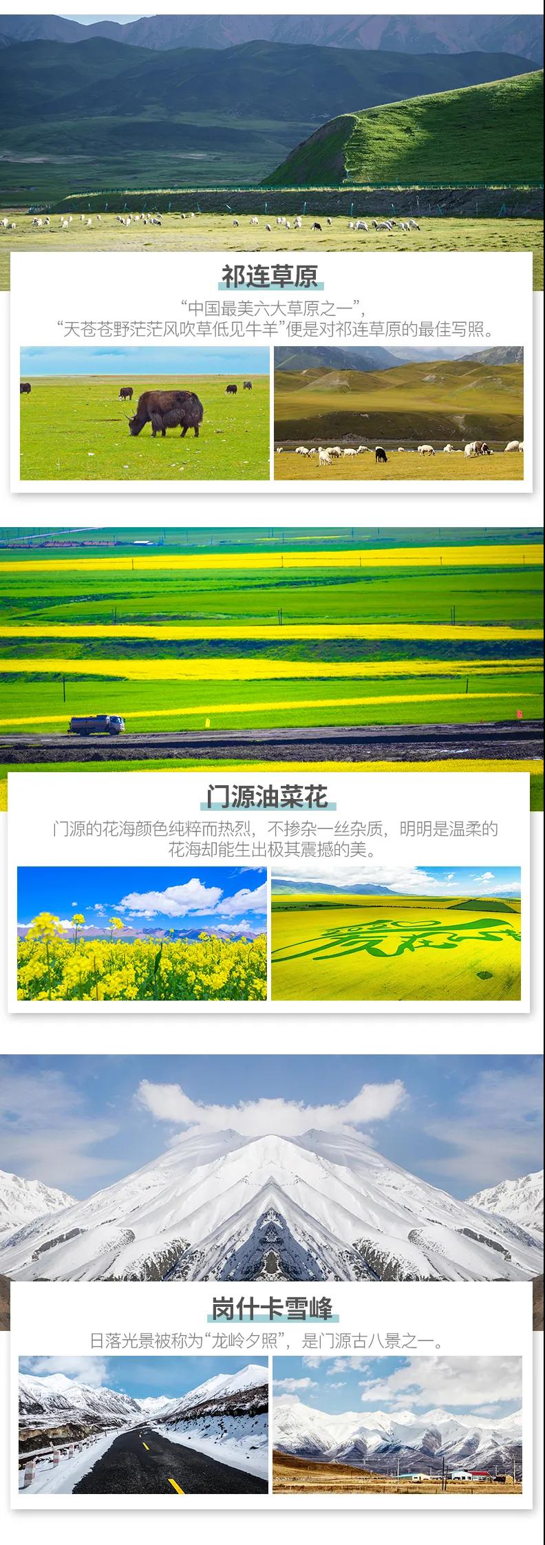 張掖 — 扁都口 — 祁連草原 — 門源(花季賞百里油菜花)— 崗什卡雪峰(遠觀)— 西寧 — 聊城