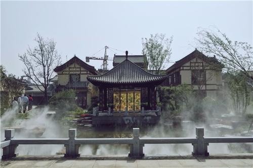 云臺古鎮(zhèn)景觀的打造以“鄉(xiāng)愁”為主題,最大限度的展現(xiàn)詩酒田園自然之美,將“竹、林、花、菜、果、水”等果蔬、農(nóng)作物的鄉(xiāng)村元素通過藝術(shù)設(shè)計的升華,植入到古鎮(zhèn)的每個角落。在公共開放休閑區(qū)域設(shè)計散點式果園、花田、稻田等景觀空間,植物、石材、木、磚、陶、水車、石墨、古井、古樹、棚架等鄉(xiāng)土自然材料,通過造景手法和簡單的藝術(shù)加工處理,處處散發(fā)著濃郁的鄉(xiāng)愁氣息。