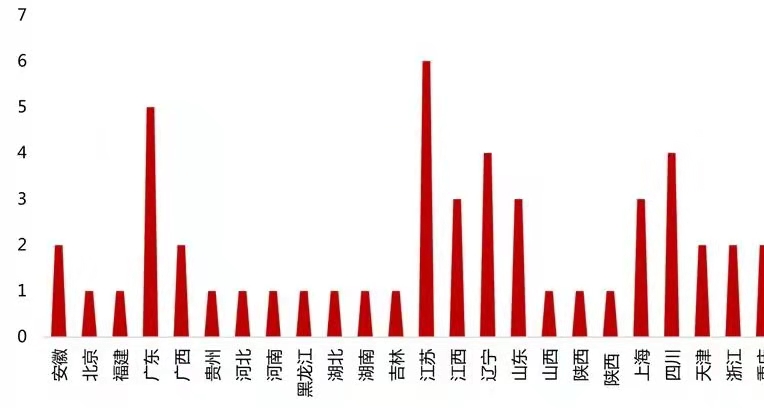 從空間分布來看,紅色文化型景區分布較為廣泛,東部、中部、西部都很豐富。由于在不同歷史發展階段,革命斗爭活動重心地區各異,同時,伴隨歷史及革命進程所涌現的領袖和名人,其誕生地也表現出區域性特點,所以,紅色文化型景區具有較明顯的地域集聚性特征。數據顯示,華東地區上榜數量最多,華北、華南、華中、西南、東北等地亦多有分布。