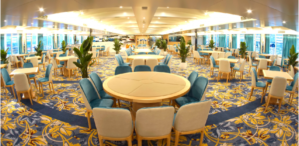 2、因船上餐廳空間有限,所以游客在船上用餐,不論自助餐、桌餐,統一實行固定座位,游客具體用餐座位請以上船后船方工作安排為準。