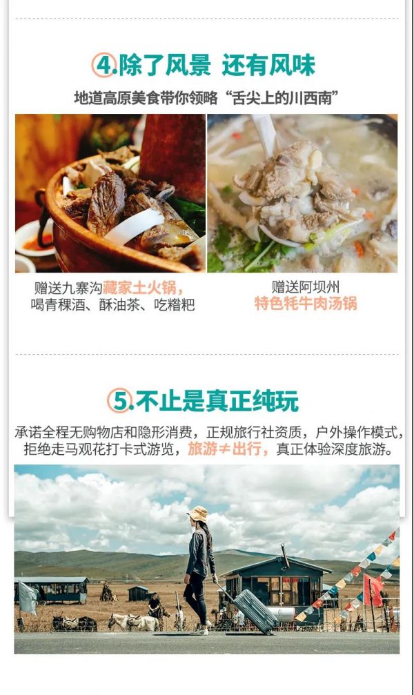 (1)贈送九寨溝走進藏家活動,吃藏式土火鍋、青稞酒、酥油茶、糌粑,與熱情藏民高歌共舞,深度體驗藏族風情;