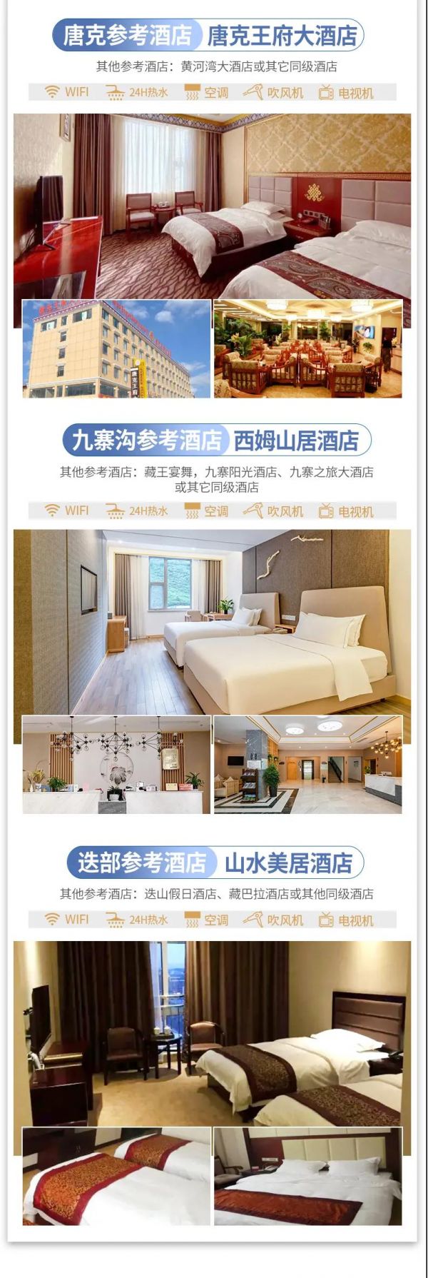 3、住宿:6晚當地精品酒店,確保酒店干凈衛生,溫馨舒適。因沿途高原藏區條件有限,如果酒店設施沒有達到您的期望,敬請諒解。參考酒店如下:
