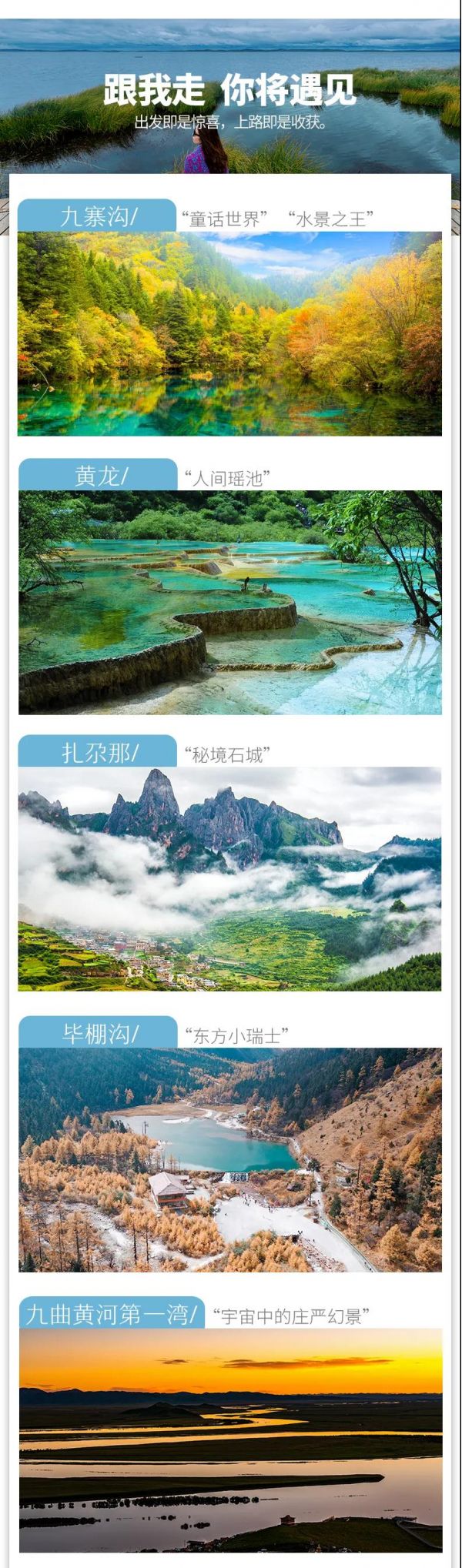 4、九寨溝景區實行分區域開放,開放區域為溝口經諾日朗瀑布至長海,扎如溝的扎如寺及日則溝的鏡海;其中,長海、五彩池、鏡海、諾日朗瀑布、樹正群海、雙龍海瀑布、扎如寺等景觀原則上為步行游覽區,具體游覽方式請聽從隨車講解員安排;