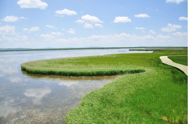 【花湖】(電瓶車30元自理)(游覽約 2H)花湖是熱爾大壩草原上的一個天然海子。湖岸邊蘆葦茂密,因湖中盛開小花而得名,這里是觀看國家一級保護動物黑頸鶴的最佳去處。花湖湖面遼闊,水下是深不可測的沼澤地,沿著湖邊的棧道行走,可以走到濕地中間的觀景臺。