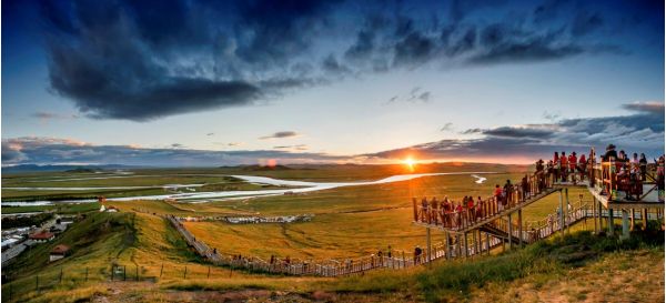 【九曲黃河第一灣】(電動扶梯60元自理)(游覽約2H)。這里是四川、甘肅、青海三省的交界地,從源頭緩緩流來的黃河在這里曲折九拐,與支流白河交匯,在草原上留下了優美的景致和美麗的傳說。