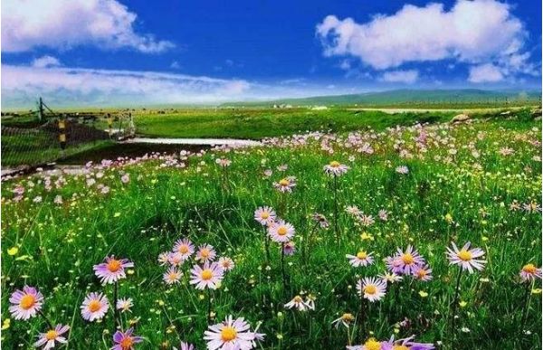 夏天的桑科草原綠草如茵,牛羊遍野,各種野花爭奇斗艷,幾十座白色的帳篷點綴在綠草地上,眼前的一切似乎夢里才會見到,美的極不真實。