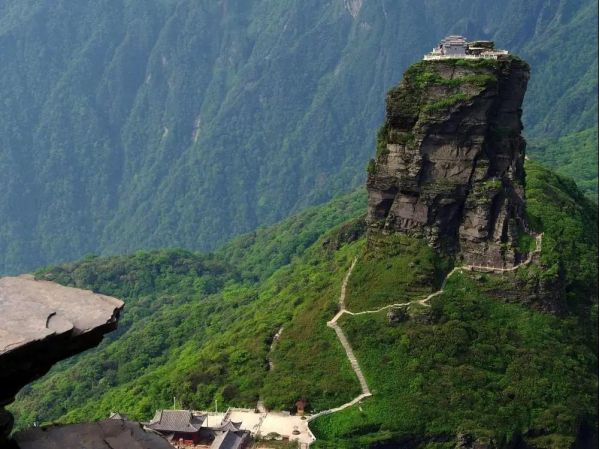 上午:乘車前往梵凈山。游覽武陵山脈主峰、中國五大佛教名山的 【梵凈山】 (不含梵凈山電瓶車 20 元/人,往 返索道 140 元/人,必須消費敬請自理) (游覽不少于 4 小時)、1986 年被列為國家級自然保護區、是聯合國“人與 生物圈”保護網成員,乘坐纜車接近山頂欣賞靈山奇石: 【翻天印,鳳求凰,萬卷書,思過崖,九皇洞等】,一路尋 找黔金絲猴和鴿子花的身影,帶著虔誠的心到 【承恩寺、燃燈殿,釋迦彌勒殿】祈福。面向佛山之核心— 【紅云金頂】:參悟現在,憧憬未來(登金頂山路陡峭,有一定的危險性,請游客根據自身身體情況選擇),觀梵凈山的標志景點— 【蘑菇石】。登上山頂,一覽眾山小,在云霧虛無縹緲之間,放空自我。