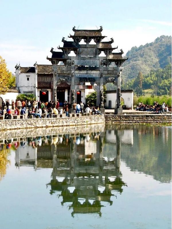 西遞坐落于黃山南麓,依山傍水,山水相依,與徽風光、徽文化、徽風情、徽飲食水乳交融,完美融合。