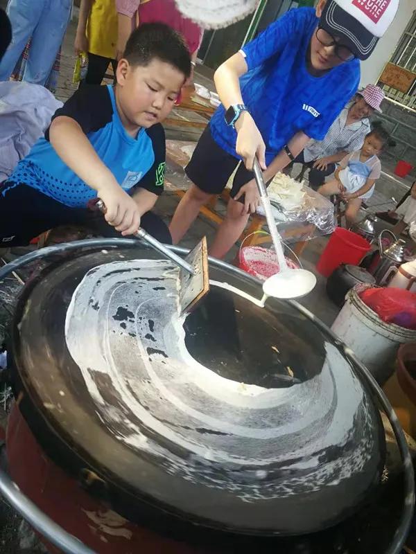 【憶苦思甜餐】這里煎餅出身根本苗紅,因為它最適合做軍糧。吃了煎餅上戰場,殺鬼子有使不完的勁。據抗戰老兵講,抗日游擊隊籌糧十分困難,就靠著老百姓每家每戶集點地瓜煎餅解決吃的問題,體驗煎餅、豆腐的傳統做法。