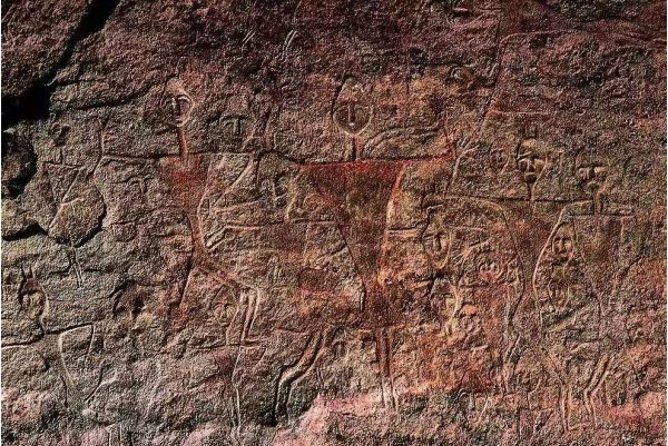 康家石門子巖畫是一幅國內及世界上罕見的生殖崇拜巖畫。位于新疆昌吉州 呼圖壁縣的天山腹地, 兩條山溪匯流處的西北岸的新第三紀的粉砂巖壁上。這處巖畫經有關專家論證定為距今三千年的塞人遺存。據認為巖刻完成于原始社會后期父系氏族社會階段。是研究新疆原始社會的珍貴資料。