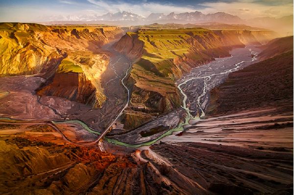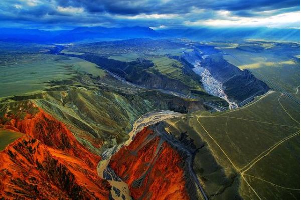 安集海河發源于天山山脈,通過長年沖刷,在通古特附近沖出天山峽谷,在天山北坡下形成了規模宏大的沖擊扇,河谷沖擊扇規模宏大,以傘形向北張開,甚稱地質奇觀。此處非景點,本地人知道也不多,幾乎無游人,拍攝危險系數較大,站在山頂往谷底看,背脊發涼。