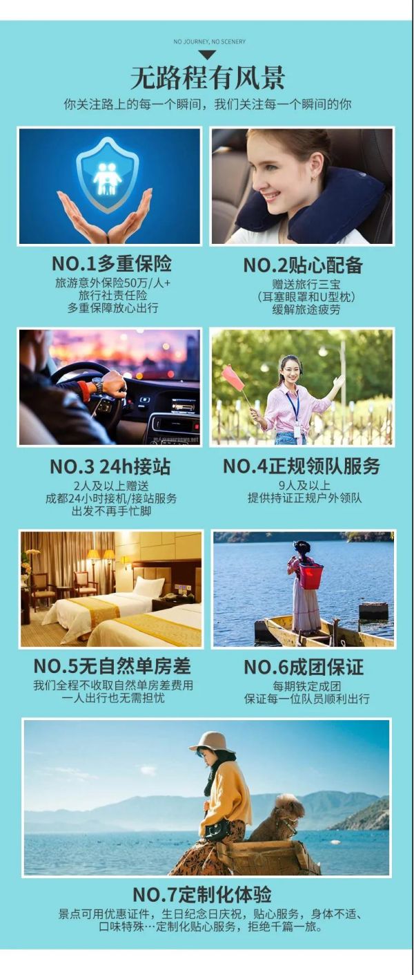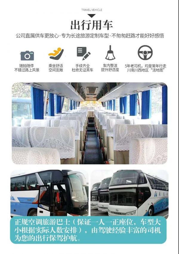 1、關(guān)于車輛交通:目前四川旅游市場(chǎng)8座以下車輛無(wú)法辦理旅游牌照,請(qǐng)游客知悉,以此理由提起的投訴我方拒不受理,望您諒解。