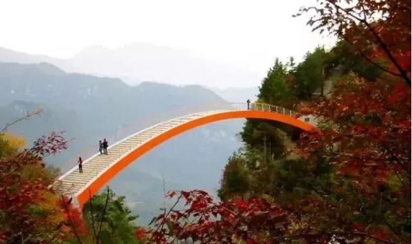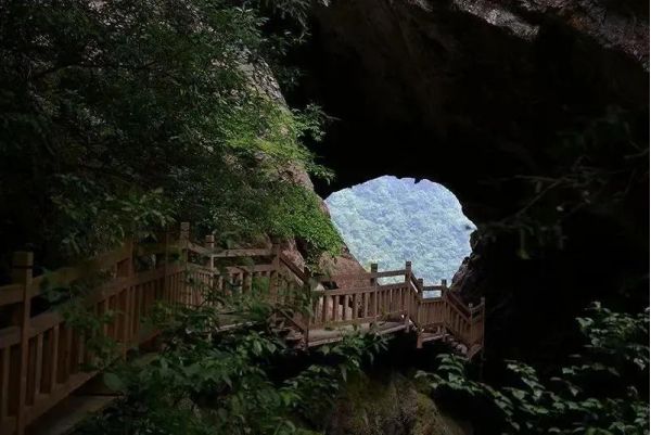 發(fā)源于老君山的黃巖河流經(jīng)此地,經(jīng)過億萬年的流動(dòng)、溶蝕,形成一巖溶性天生穿洞,河水穿洞下瀉,呈現(xiàn)出‘天橋飛渡’。在這里有風(fēng)情萬種的飛瀑,鬼斧神工的天然石橋,美麗的蘭花山,險(xiǎn)峻扼要的石壁棧道,組成了一幅絢麗多彩的山水畫卷。