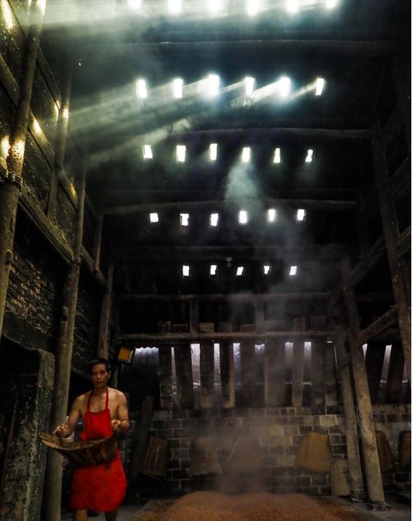 一上午時間拍攝酒廠的各道工作流程,在百年建筑里,光線灑落在整個車間,熱氣蒸騰的畫面;下午到達太平古鎮記錄川南古鎮的特色建筑等。