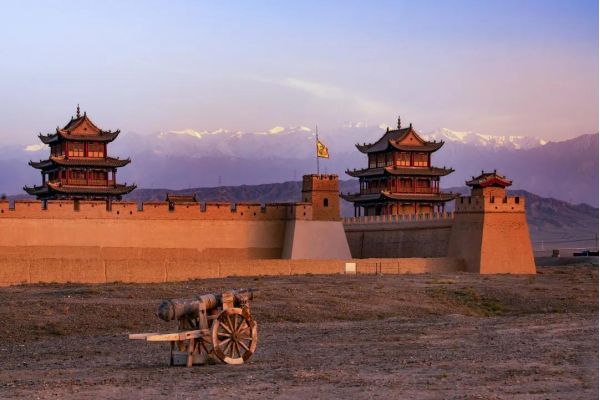 關城城墻橫穿沙漠戈壁,北連黑山懸壁長城,南接天下第一墩,是明長城最西端的關口,自古為河西走廊第一隘口,同時也是長城眾多關城中保存最為完整的一座,地勢險要,有“連陲鎖陰”之稱。從關外看去,巍峨雄壯的關城及甕城佇立在夕陽之下,一派莊嚴;關外則是延綿的祁連山脈,遠處的山頂可見積雪,天空的燦爛云霞將嘉峪關關城襯托地更加壯美。踱步在幾百年前的大青石上,亙古的風攜著秋日寒意拂過你的發梢指尖,建筑不能言語,但這一草一木又似乎都在向你訴說著歷史的厚重。
