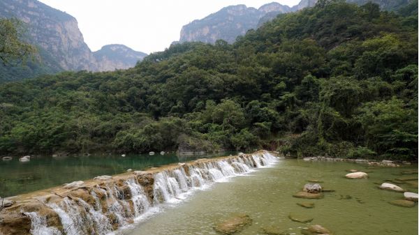 餐后前往云臺山,登山游覽小寨溝方向。小寨溝相傳為隋末農民起義英雄劉武周和唐太宗李世民安營扎寨之地。谷底巨石矗立,溪流涓涓;三步一泉,五步一瀑,十步一潭,被譽為“潭瀑川”。溝內冬春溫和,夏秋涼爽,又稱“長春溝”。最為壯觀的為丫瀑潭,瀑高20余米,上下相連,形成一個“丫”字形,瀑下積水成潭,翡翠碧綠,面積百余平方米,潭周圍有大片開闊地,可供游憩。