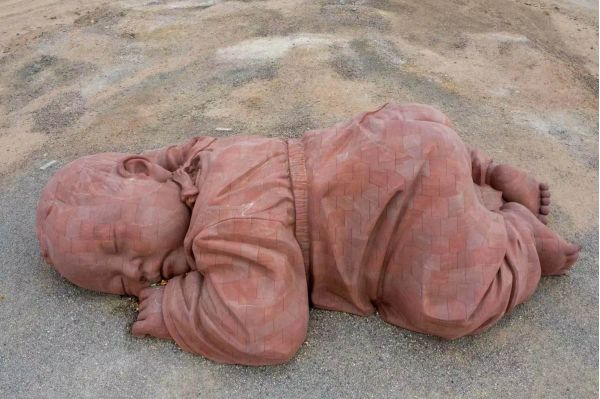 經瓜州,參觀網紅打卡地【瓜州大地之子】,在2016年年底的時候,一個可愛的“乖娃娃”在甘肅瓜州隔壁沙灘上橫空出世,因為它不管風吹雨打都趴在那里一動不動,仿佛睡著了似的,所以 人們都喜歡稱他為“乖娃娃”,而且它靜靜地趴在大漠之中,雖然四周有些荒涼,但卻更像是整片大地都在擁抱著她,就像一個酣睡的孩子,睡在母親的懷抱,所以它的名字叫做“大地之子”。