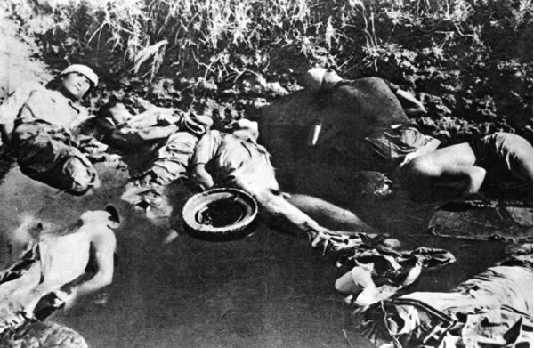 圖為在南京大屠殺中,日軍把無辜的中國人反綁雙臂槍殺后,擲入城郊池塘。新華社發