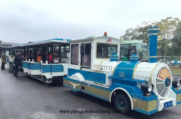 緩步穿過龍虎山觀光車站,一輛藍白相間的小火車徐徐向我們駛來。