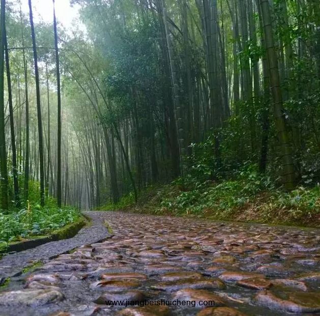 兩側的竹林枝葉相連遮天閉日,感覺黑幽幽。走在路上鞋子與大地的吻跡,心里特別舒服。