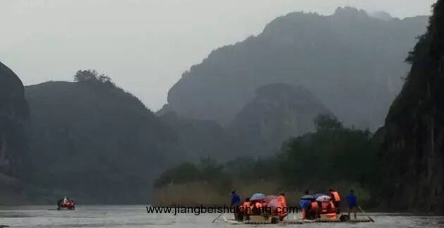 竹筏漂流的路線,從竹筏碼頭到仙水巖景區(qū)的仙女巖碼頭,沿途丹山碧水,景色美不勝收。