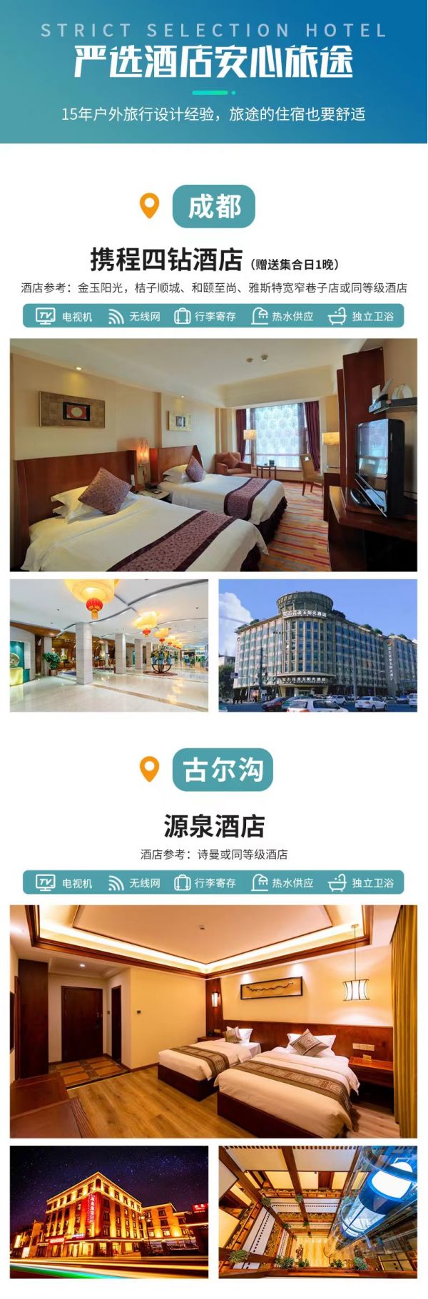 (2)如當天實際情況不允許,則會調整入住于畢棚溝溫泉酒店,望您諒解。
