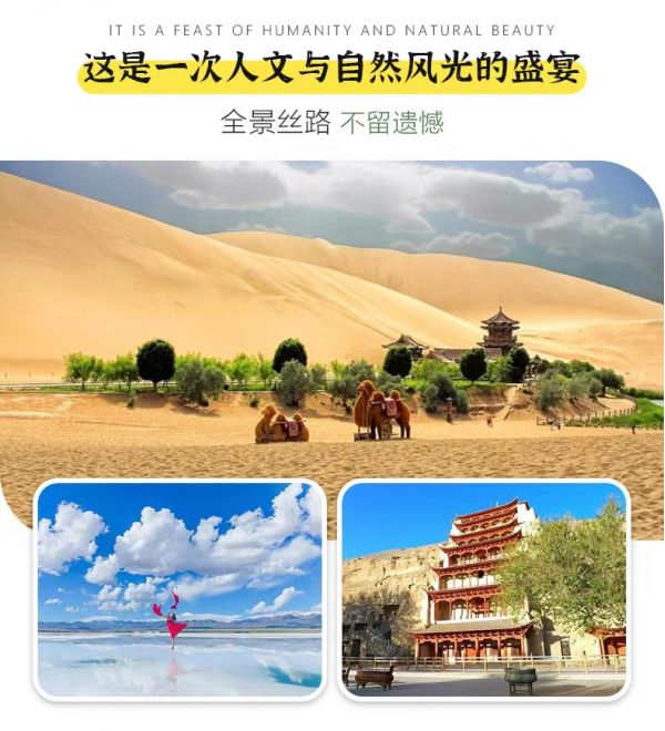 1. 敦煌莫高窟景區自2015年6月起實行數字展示中心數字洞窟展示和莫高窟實體洞窟體驗的預約參觀模式,每天限6000人參觀,團隊參觀時間嚴格按照莫高窟預約場次進行,因此,敦煌段景點參觀順序會根據莫高窟時間進行調整或同團客人安排不同時間游覽,敬請配合。