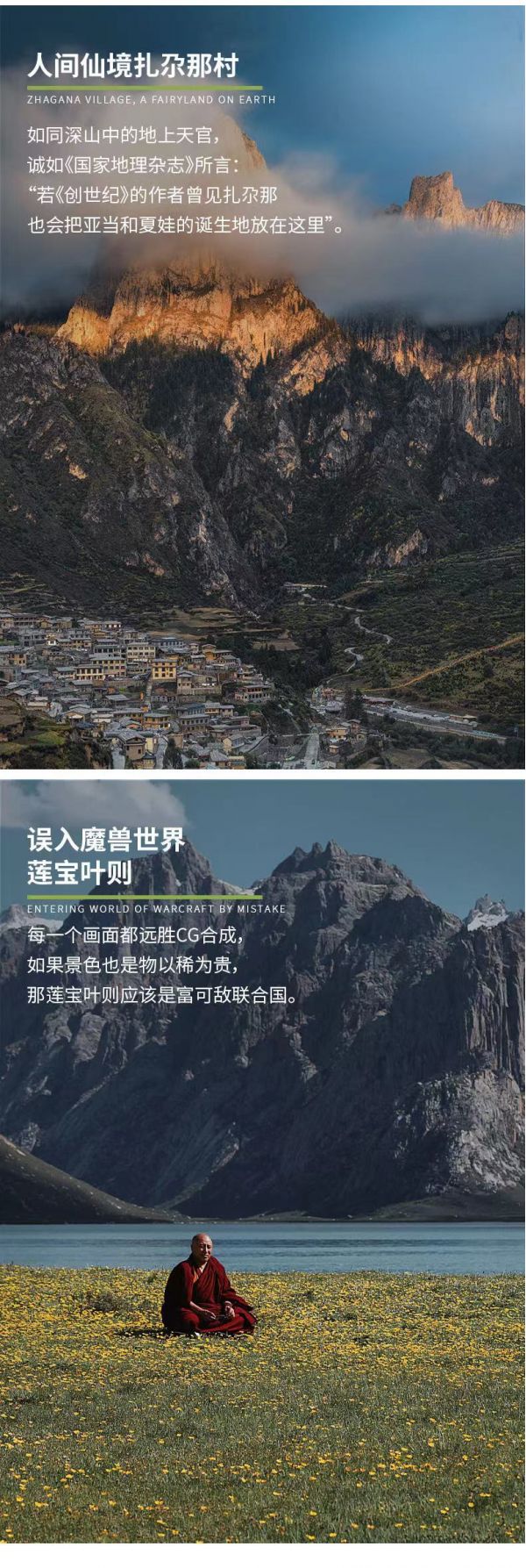 早起我們從迭部出發(fā)到扎尕那,當(dāng)?shù)厝顺Uf“天堂很遠(yuǎn),扎尕那很近”,連美國《國家地理雜志》約瑟夫·洛克也說“我平生未見如此綺麗的景色,若《創(chuàng)世紀(jì)》的作者曾見迭部(扎尕那)也會(huì)把亞當(dāng)和夏娃的誕生地放在這里”。位于甘南藏族自治州迭部縣的【扎尕那】,是一圈俏麗的崖壁包裹中的一個(gè)藏族小村寨,風(fēng)景秀麗奇幻,是整個(gè)甘南藏區(qū)風(fēng)光最為優(yōu)美又最為原始的地方之一。村中古老的木制藏房沿山而建,藏民們安靜淳樸地勞作在山坡河水之間,構(gòu)成美妙的田園風(fēng)光。無論觀光、攝影,還是參觀淳樸藏族人民的傳統(tǒng)生活,這里都是不可錯(cuò)過的美妙之地。每年7月初左右,暖暖的陽光播撒在扎尕那,田地里的油菜花千朵萬朵壓枝著盛開,將周圍的石山、木屋擁抱其中,彩蝶農(nóng)人流連其間,繪出一副油畫般的絕美田園景象。2017年10月,大熱綜藝《爸爸去哪兒5》攝制組來到扎尕那拍攝,明星爸爸們帶著萌娃來到了這里,再一次將這個(gè)古樸美麗的小村莊展現(xiàn)在世人面前,我們此次便沿著熒屏里記錄過的風(fēng)景前去收獲這片人間凈土。